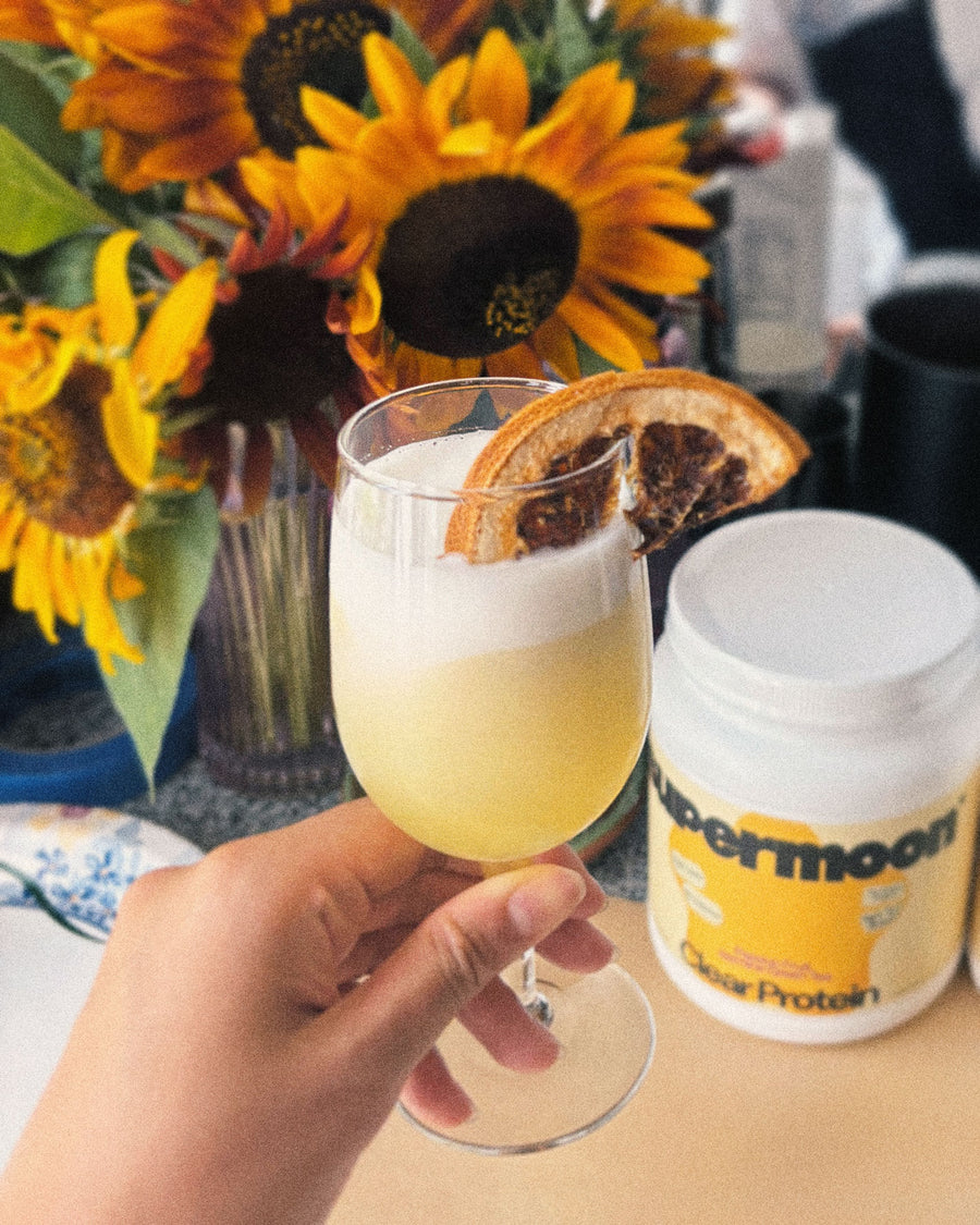 @hongdaonyc Mango Chili Passion Fruit Spritz Supermoon Protein, Mango Puree, Tequila (or Club Soda), Lime Juice, Tajin
